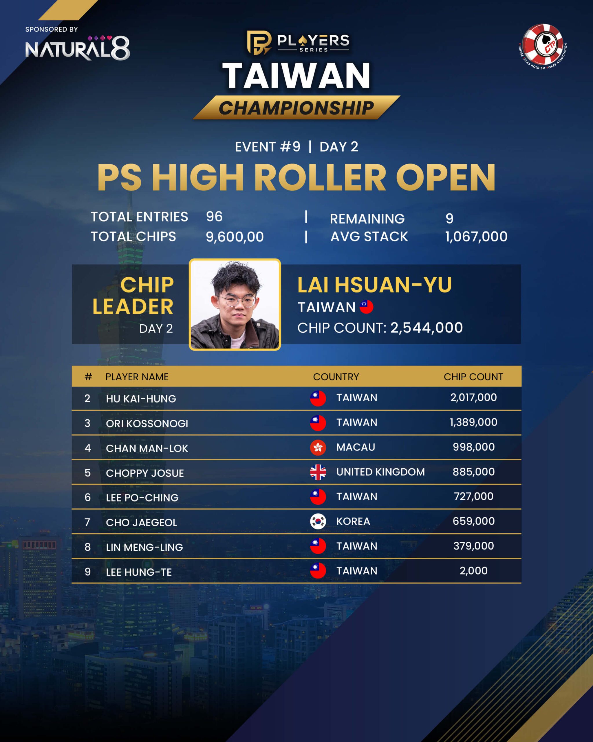 #9: PS High Roller Open (8-Handed) – Day 2 – NT$2,500,000 GTD