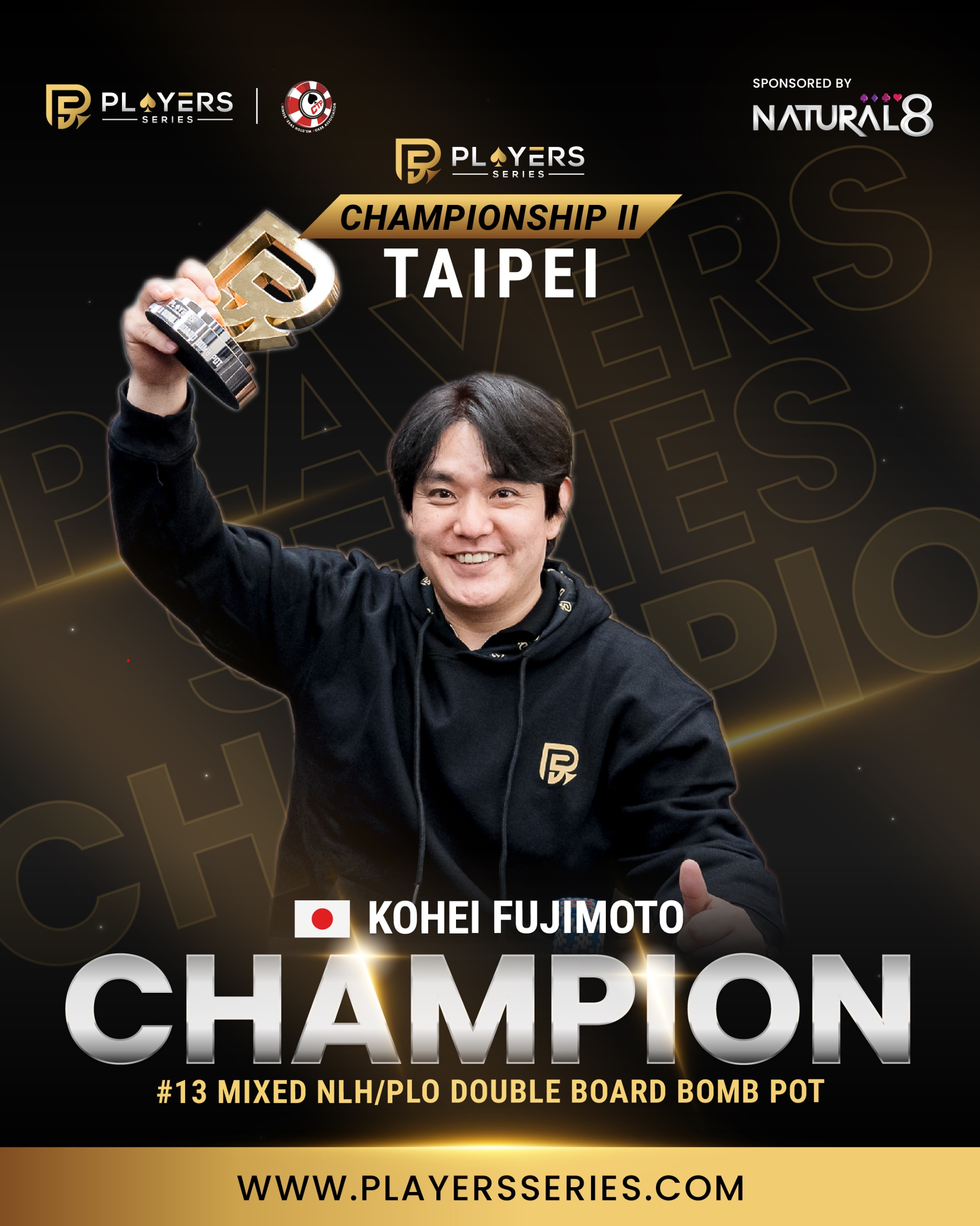 Out of a competitive field of 40 entries, Kohei showed skill and strategy across both NLH and PLO boards to claim the victory. A fantastic performance at the tables!