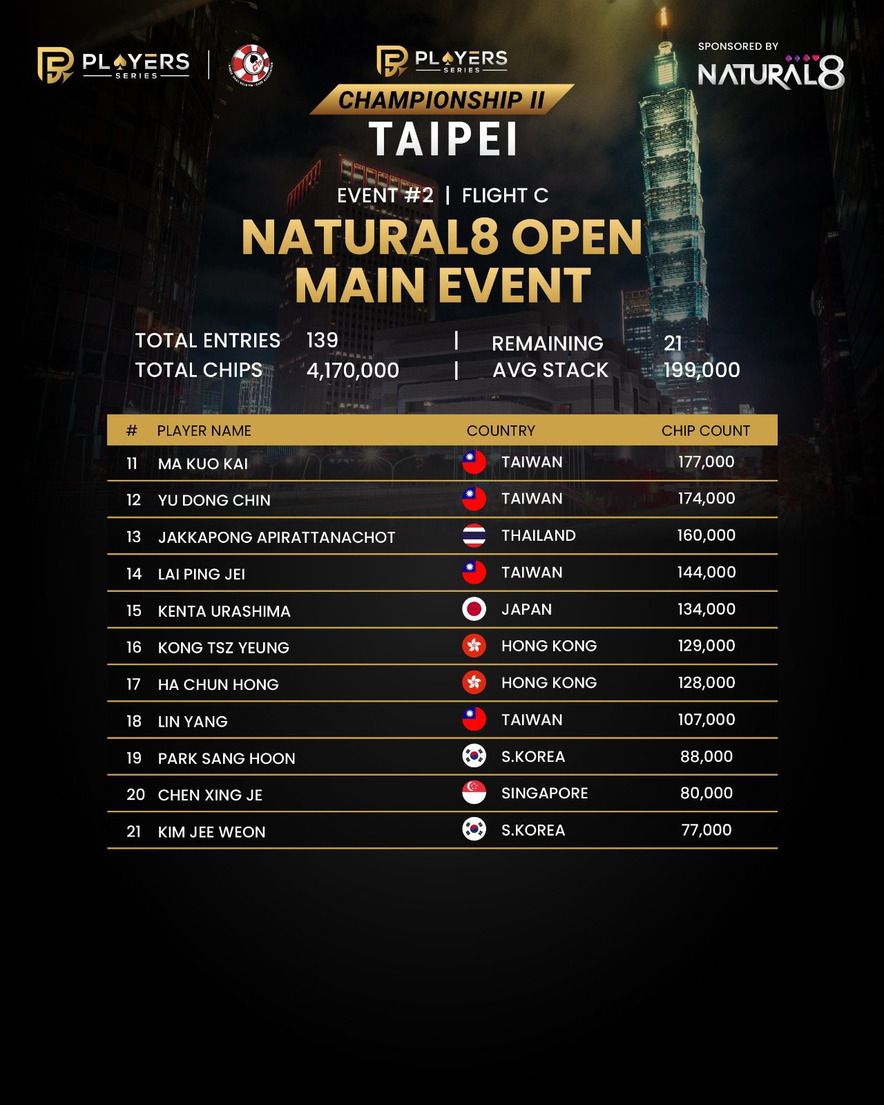 #2: Natural8 Open Main Event – No-Limit Hold’em – Flight C – NT$7,000,000 GTD