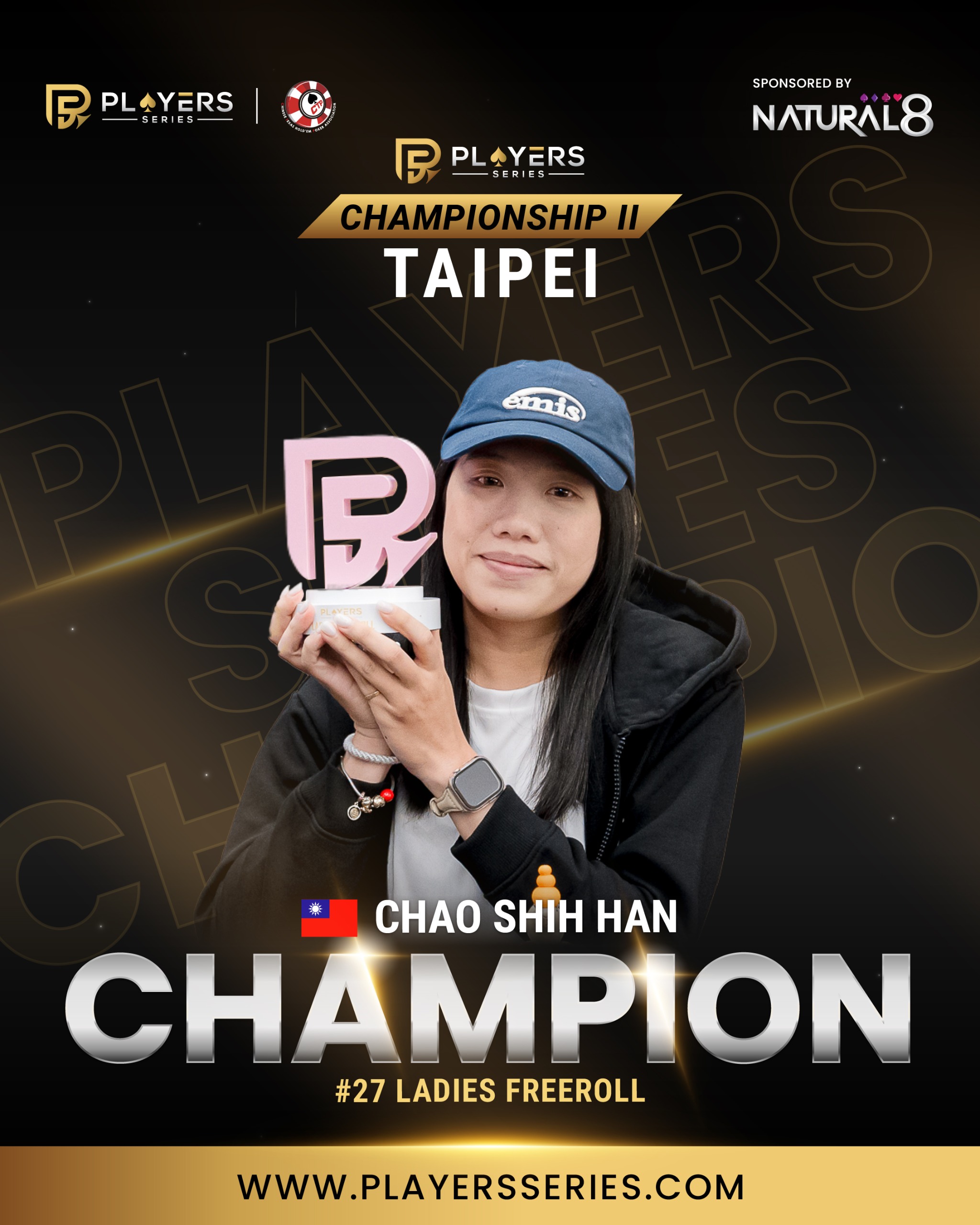 Chao Shih Han, representing Taiwan, takes the crown in Ladies Freeroll Event #27 at PS Championship II Taipei 2025!