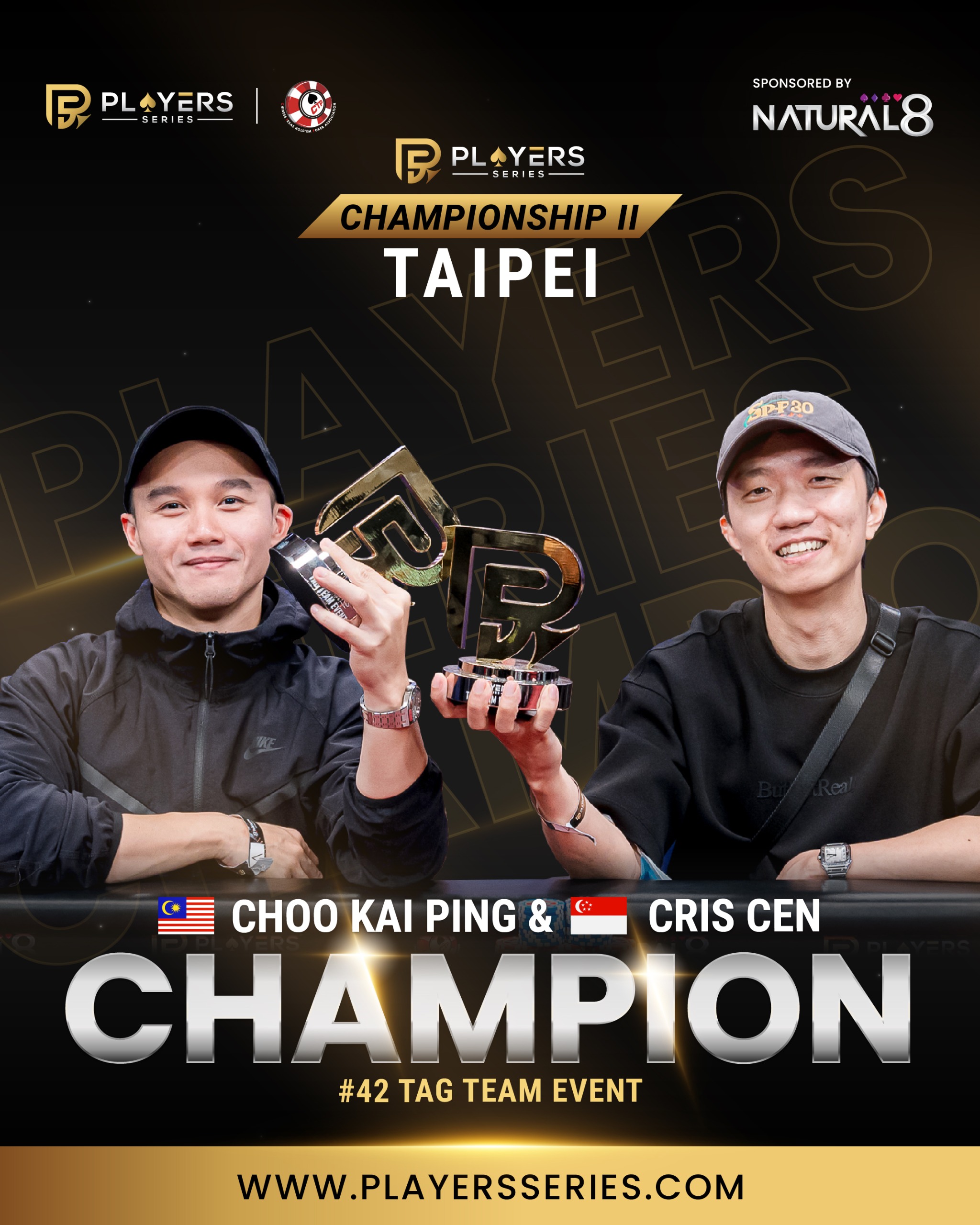 In this thrilling Tag Team format, players combine their skills to dominate the table—and this duo did it to perfection. Each walks away with NT$ 101,000 and a PS Trophy, but the real victory is their flawless teamwork and unstoppable chemistry. What a performance!
