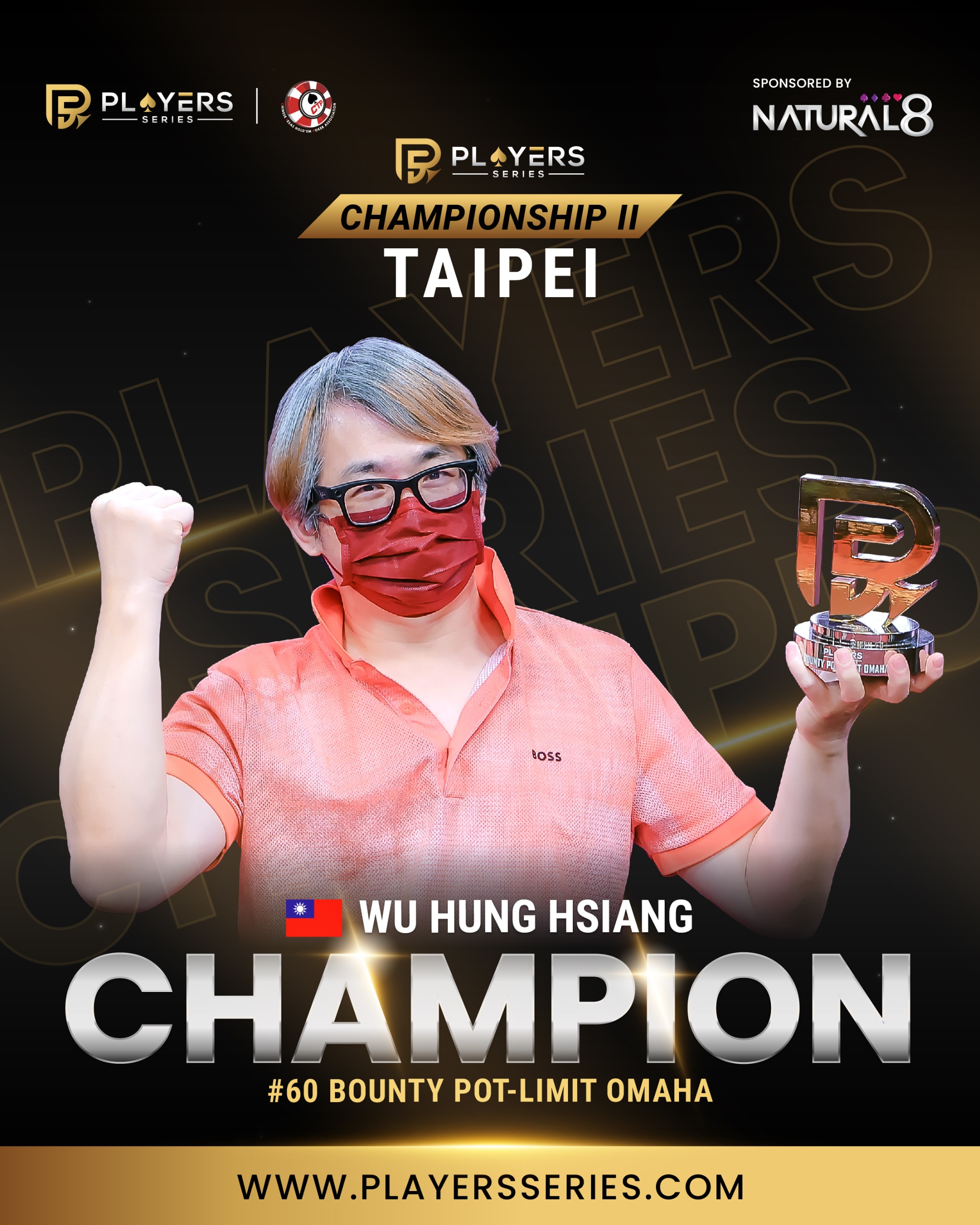 The PS #60 Bounty Pot-Limit Omaha delivered the explosive mix of four-card action and knockout prizes that players love. Out of 73 entries, it was Wu Hung Hsiang from Taiwan who triumphed, combining sharp PLO skills with fearless bounty hunting to take the title and NT$113,700!