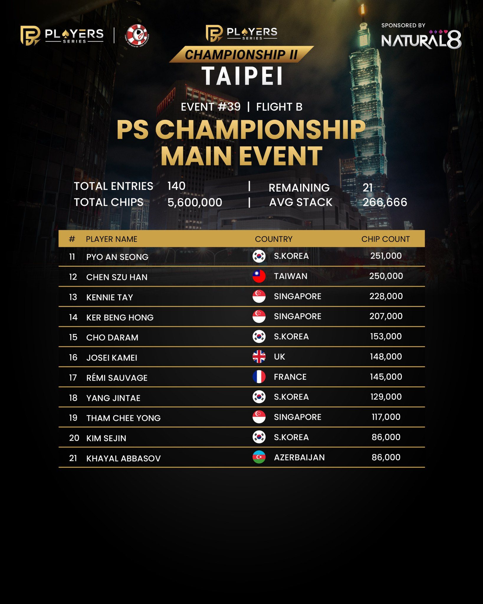 #39: PS Championship Main Event – No-Limit Hold’em – Flight B – NT$20,000,000 GTD
