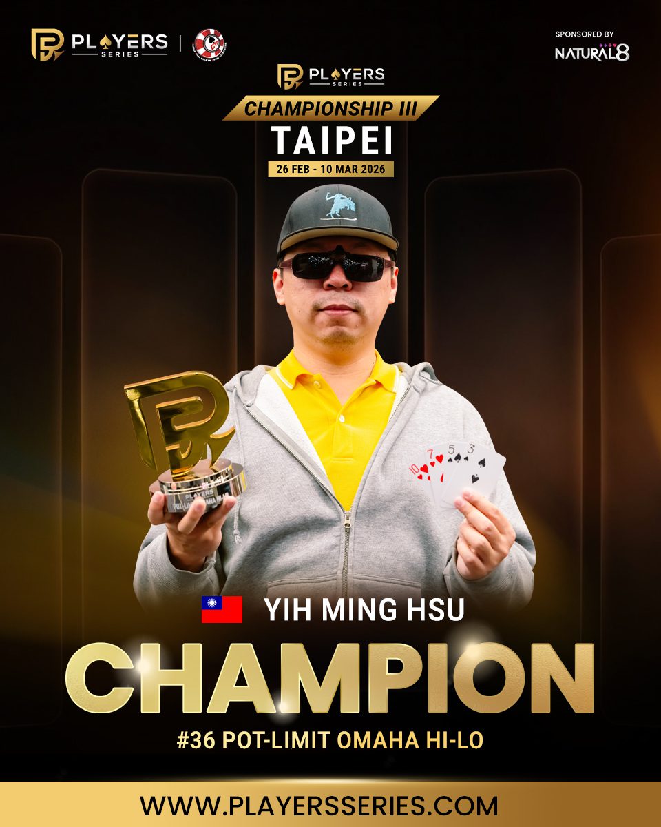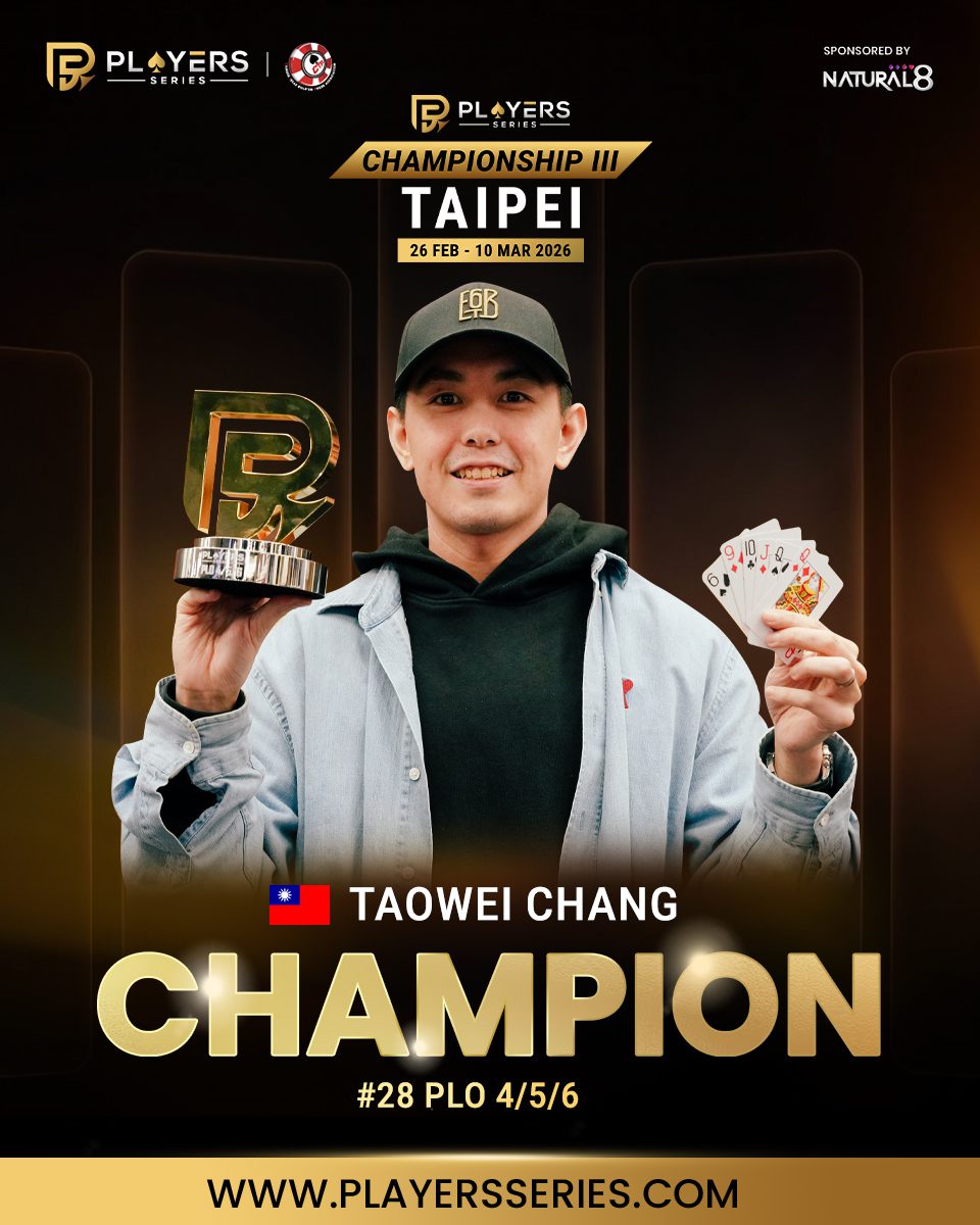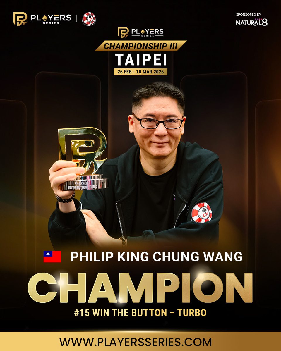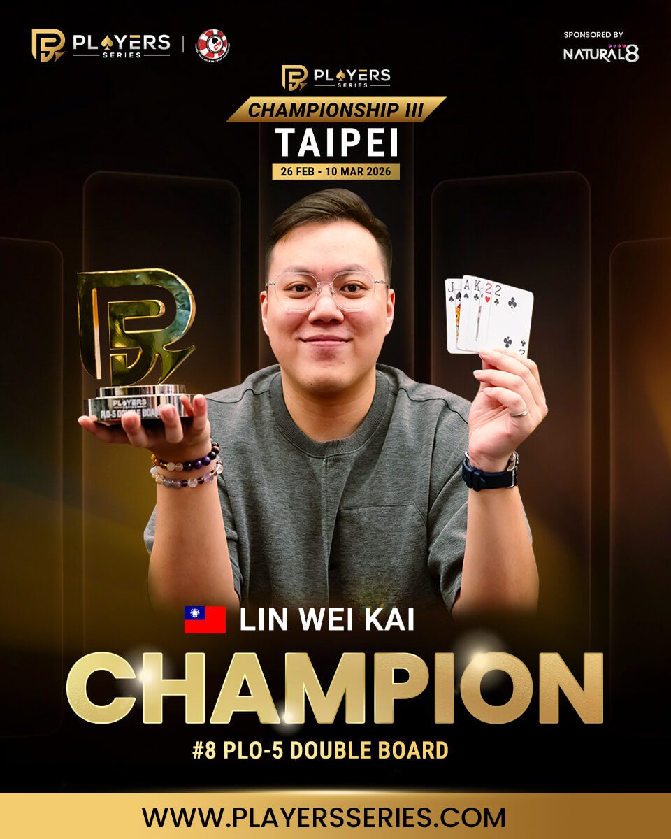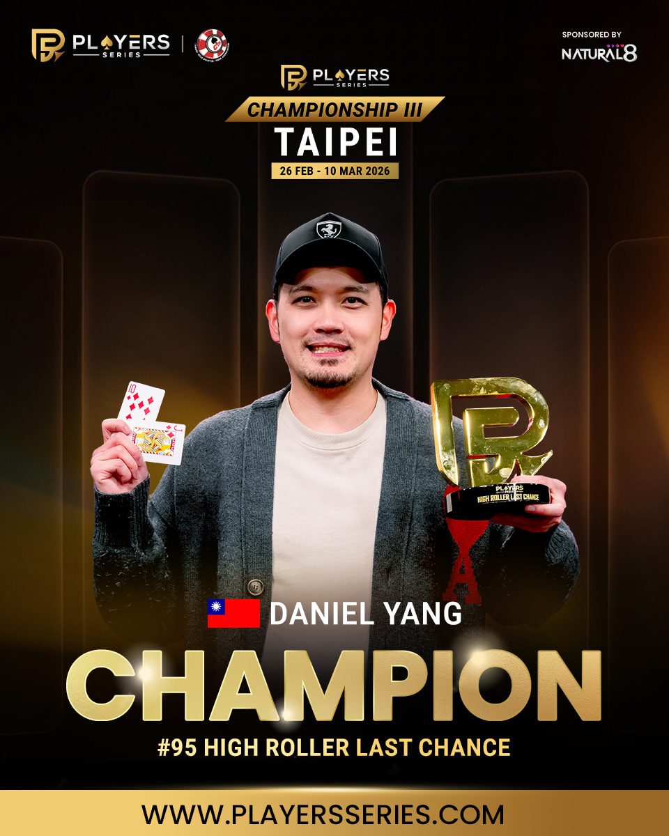 - EVENT: #95: High Roller Last Chance (8-Handed) – No-Limit Hold’em – NT$1,000,000 GTD