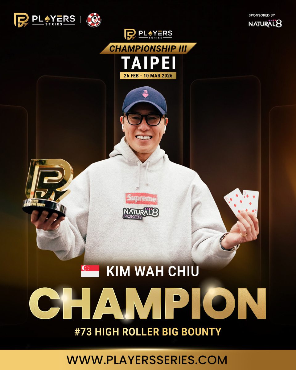 - EVENT: #73: High Roller Big Bounty (8-Handed) – No-Limit Hold’em – NT$18,000 per Bounty – NT$1,000,000 GTD