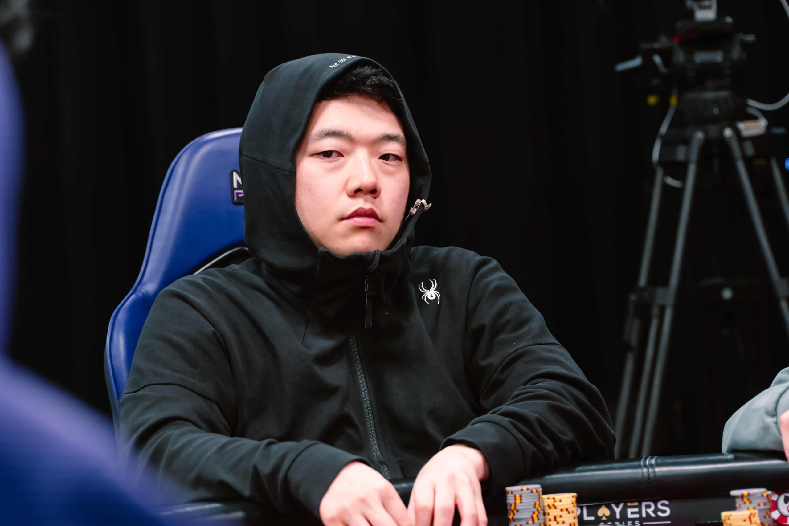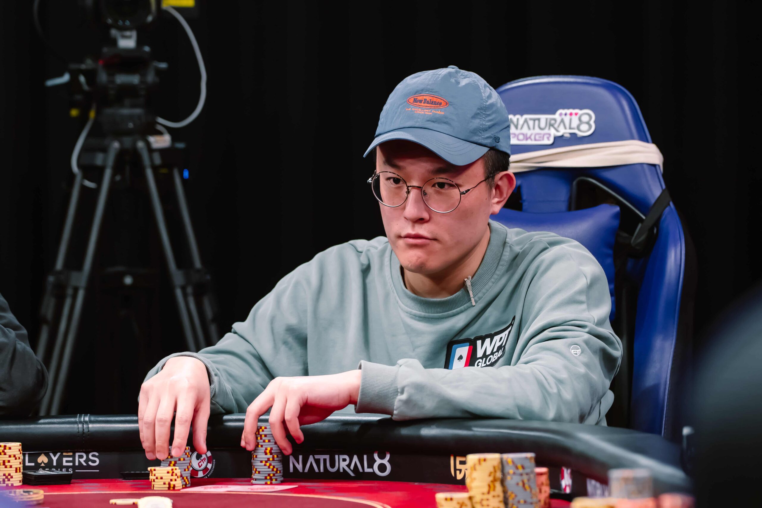 Kristof Segers jams and chip leader Seungmook Jung snap-calls. Segers is far behind with
