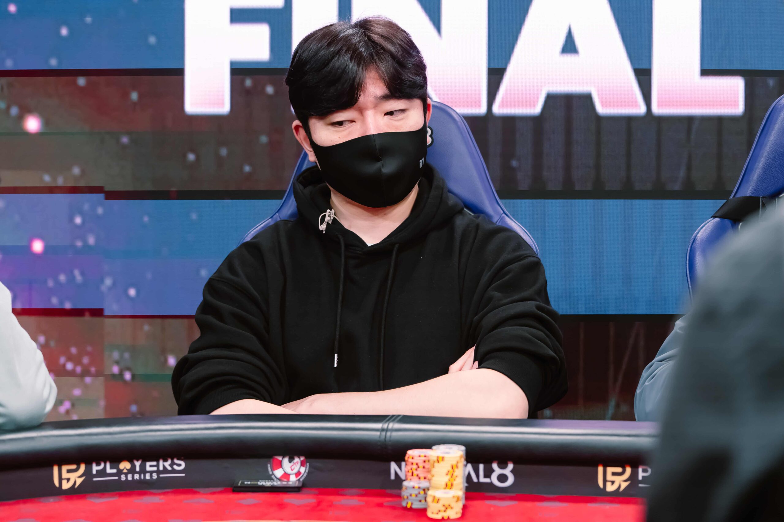 The PS Championship High Roller is now heads up between two Korean players: Seungmook Jung and Kwon Tae Young. Both players are guaranteed TWD 920,000 with the champion padding up an extra TWD 580,000.