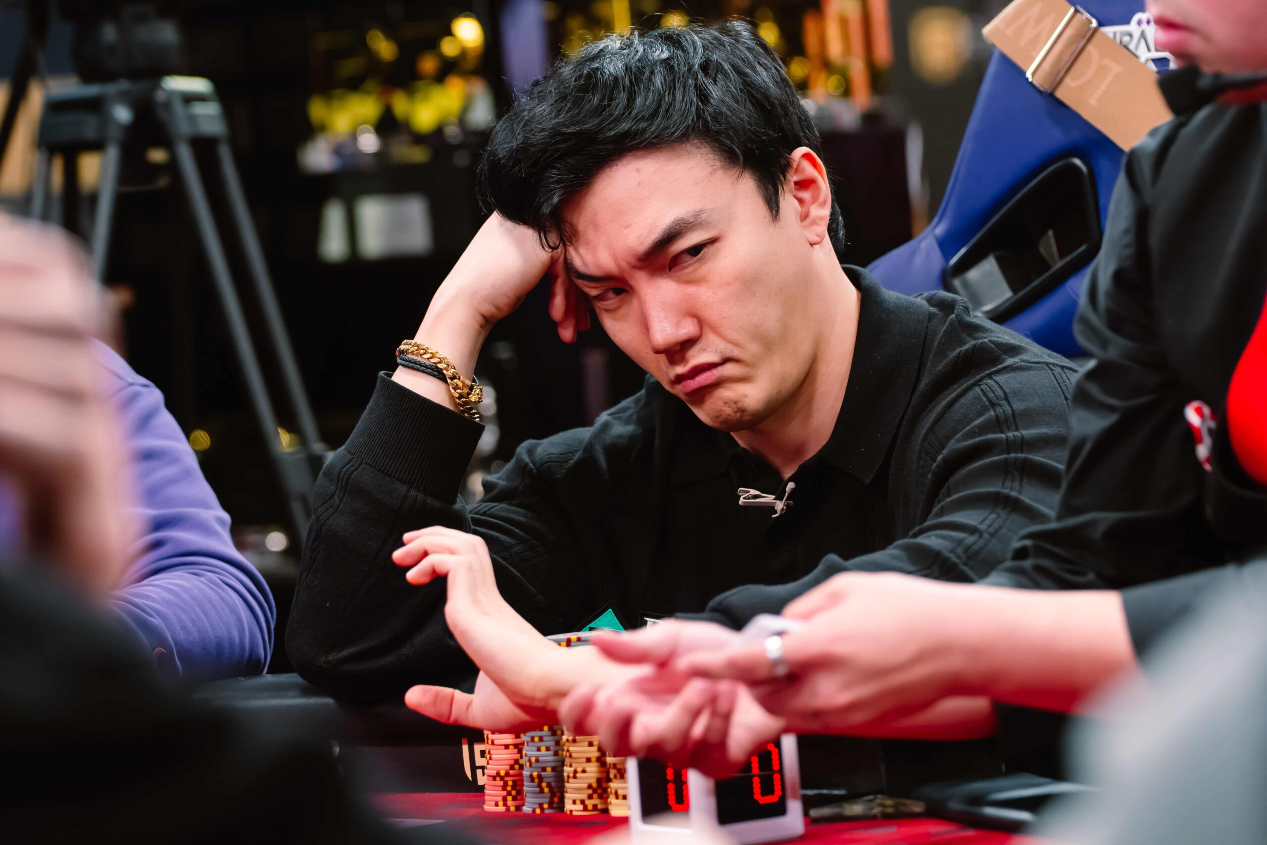 From there, eliminations come quickly. πΉπ Nirunrut Rachburom is the first to the pay desk in 13th place, followed by πΈπ¬ Chee Keong Teng in 12th. πΉπΌ Cheng Yu Hsuan then delivers a double knockout to π°π· Han Dong Ju (11th) and πΉπ Methavee Taveekitvatee (10th) to establish the final table.